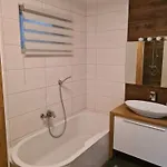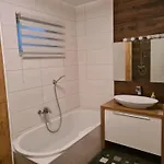 This apartment is equipped with a bathroom that features hairdryers and towels. A separate toilet can also be found.